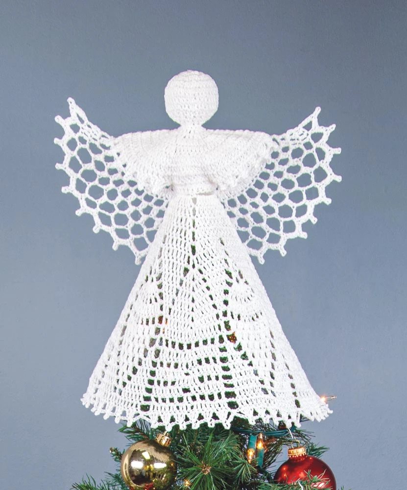 Adorable angel to place on top of your Christmas tree. Kit includes Crochet Cotton, stiffener and pattern. Requires crochet hook E-4. Size 12″ tall.