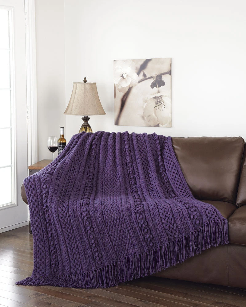 Knit this afghan using Mary Maxim Best Value Yarn. Requires 12 skeins and 36″ circular needle size 9 (5.50 mm).