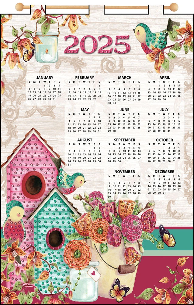 Mary Maxim exclusive calendar kits are quick & easy to stitch or glue. Includes printed felt, sequins, beads, floss, dowel with finials. Size 16 x 24″.