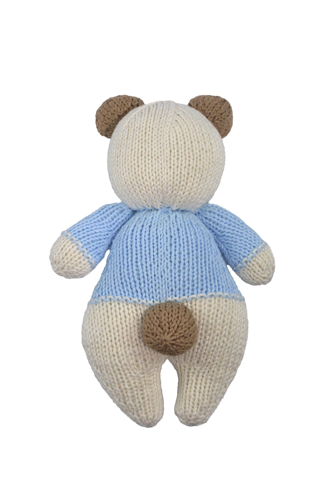 Kit includes everything you need to knit this adorable boy bear. Size 10″ tall.