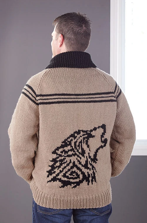 Toasty warm jacket for walking on the wild side. Classic design for men and women. Kit includes Mary Maxim Titan yarn and pattern. Requires Knitting Needle 10 (6 mm) and 8 (5 mm).