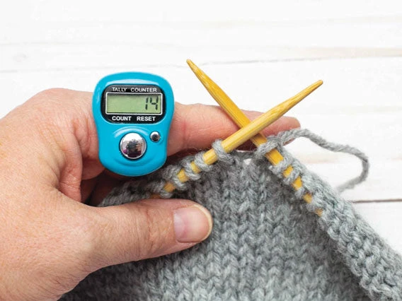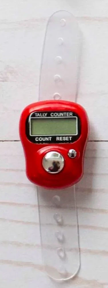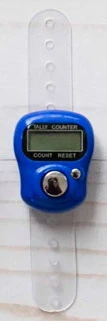 This cute digital ring row counter has an adjustable strap to fit around your thumb or finger. Press the main button each time you finish a row to keep track of your progress. The smaller button resets the count back to zero.
