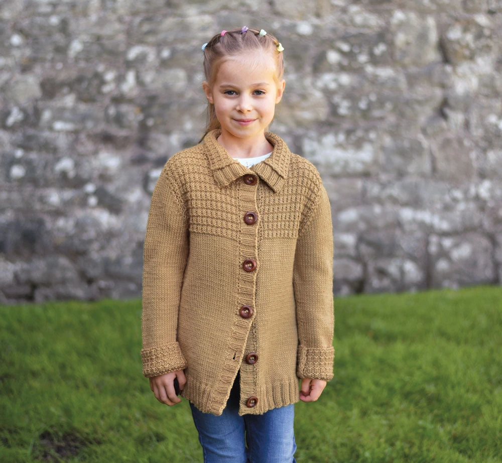 Designed by Tatsiana Matsuik. A stylish cardigan of textures with set in sleeves and comfortable collar. Kit includes Alpaca Tweed yarn and pattern. Buttons not included. Requires 32″ circ. needle size 7, 24″ circ. needle size 6 and needles size 8.