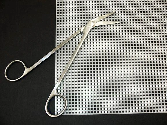 Surgical quality steel scissors have angled blades to allow you to cut plastic canvas with ease.