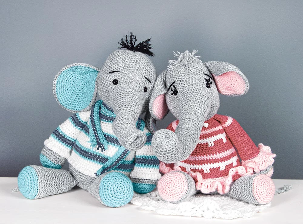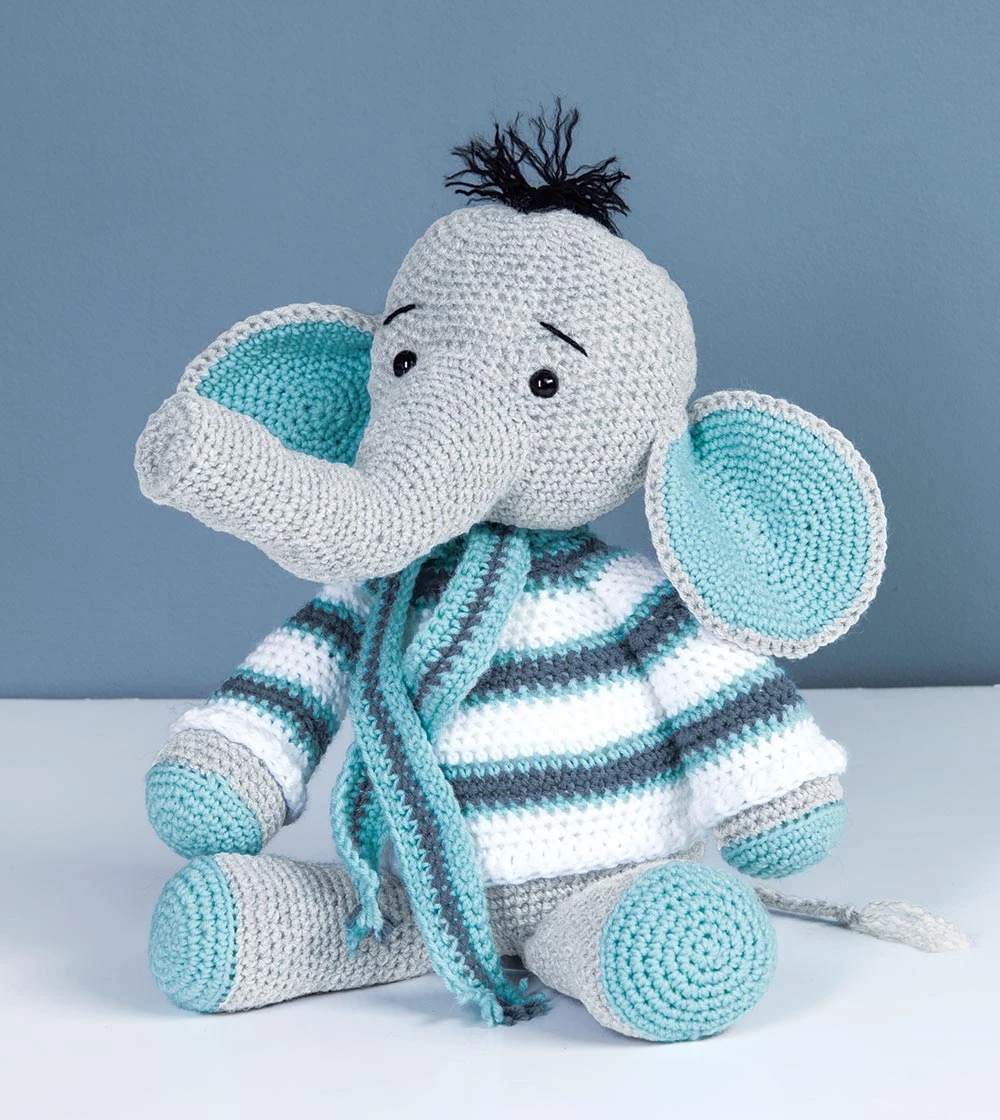 Lovable pachyderms to crochet! These cute elephant kits include Mary Maxim Mellowspun DK yarn, safety eyes and pattern. Polyfill sold separately. Size 11″ tall in sitting position. Requires crochet hook F-5 (3.75 mm) and stitch markers. Intermediate crochet.