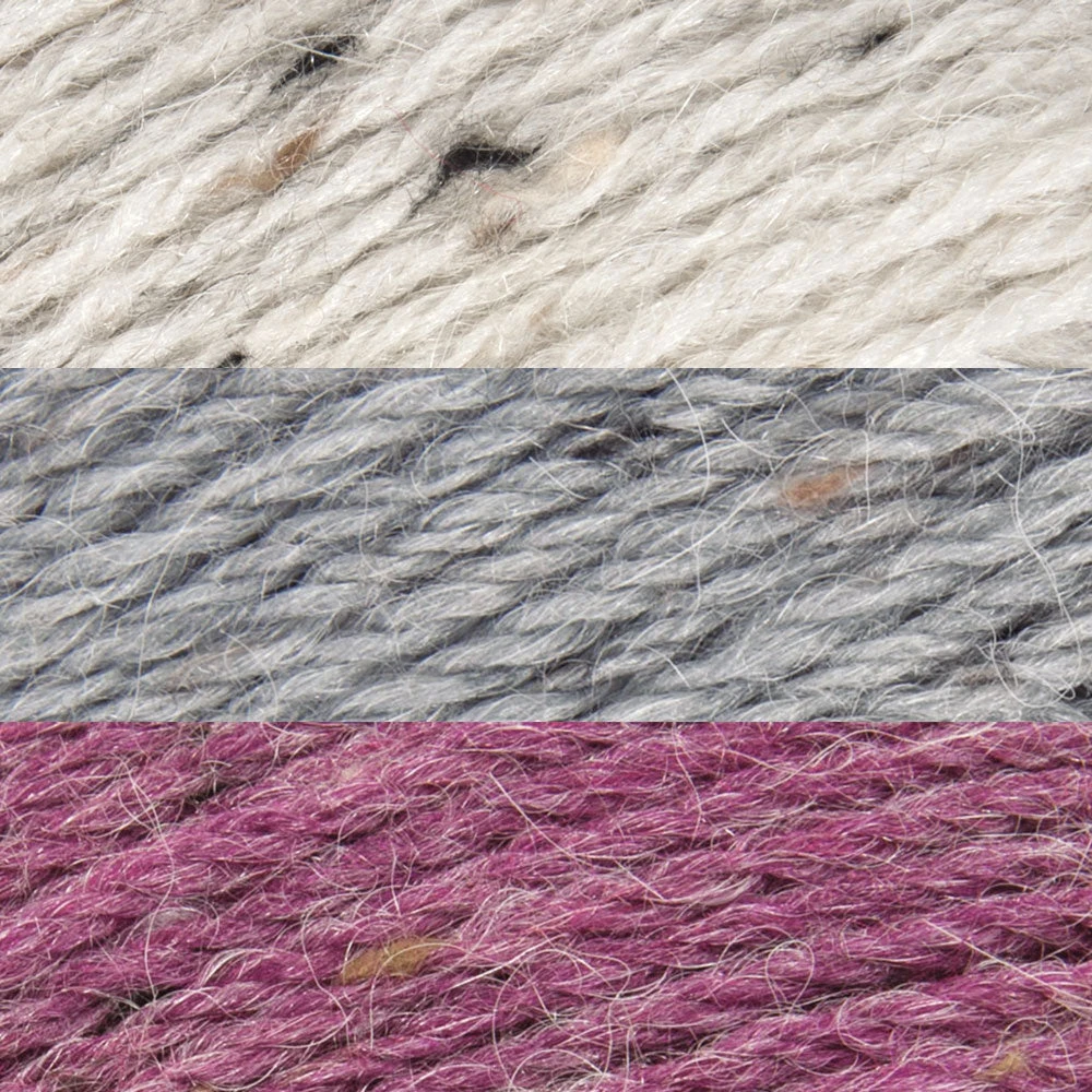 So soft and comfortable, you will want to wear this striped tunic everyday. Kit to knit includes Mary Maxim Natural Alpaca Tweed yarn and pattern. Requires Knitting Needle size 10 (6 mm).