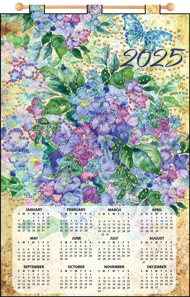 Mary Maxim exclusive calendar kits are quick & easy to stitch or glue. Includes printed felt, sequins, beads, floss, dowel with finials. Size 16 x 24″.