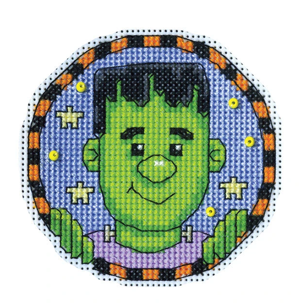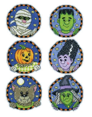 These monsters are ready to party. Kit includes 14 ct. plastic canvas, floss, needle and instructions to make set of 6. Size 3.25 x 3.25″.