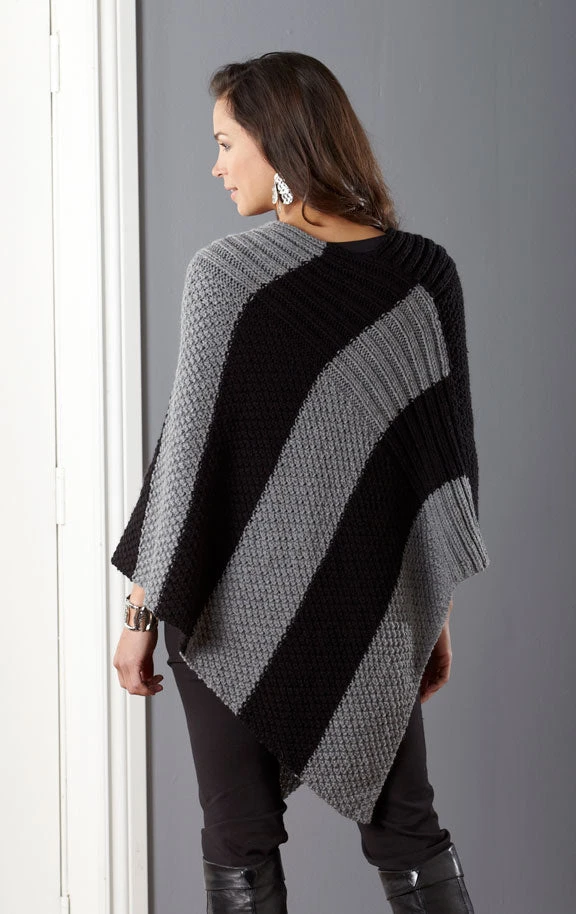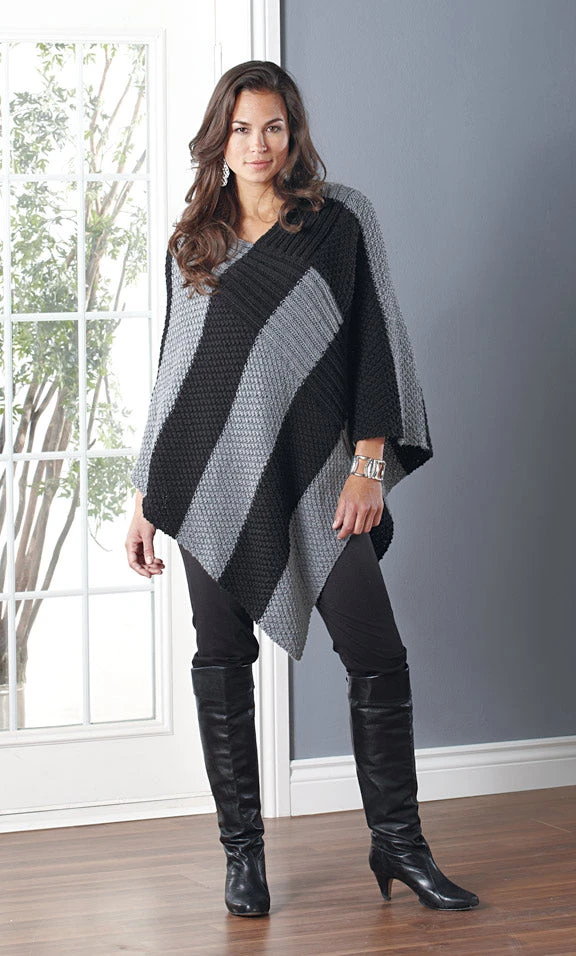 Stand out in the crowd with this striking poncho. Kit includes pattern and Mary Maxim Starlette yarn. Requires Knitting Needles Size 9 (5.5 mm) and Stitch Markers.