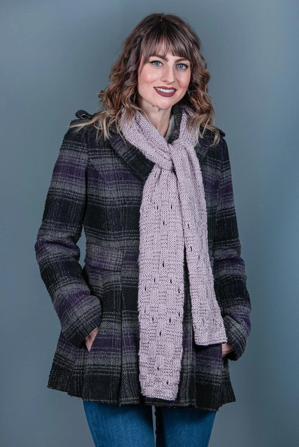 Soft as silk, but warm and cuddly for those cold days. Kit includes Mary Maxim Sunrise yarn. Requires needles size 9 (5.5 mm). Size 7.5″ x 60″. Intermediate knit.