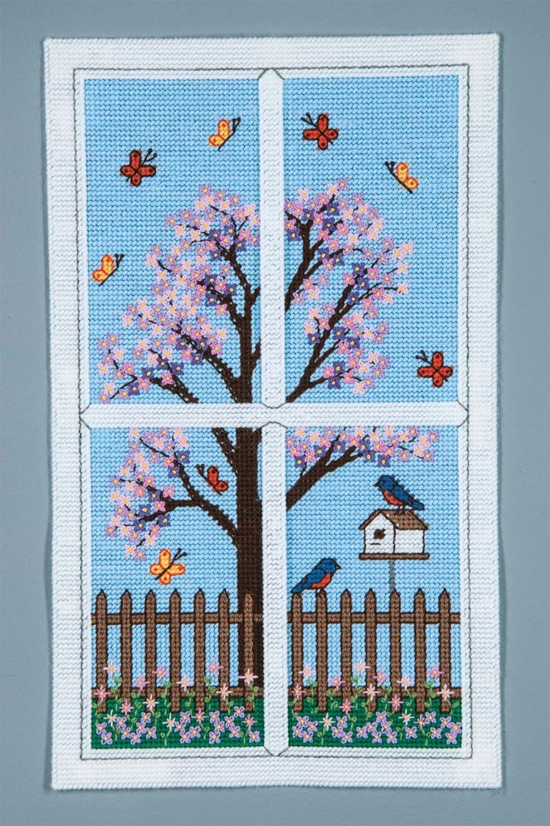 Spring Window Frame Wall Hanging Plastic Canvas Kit