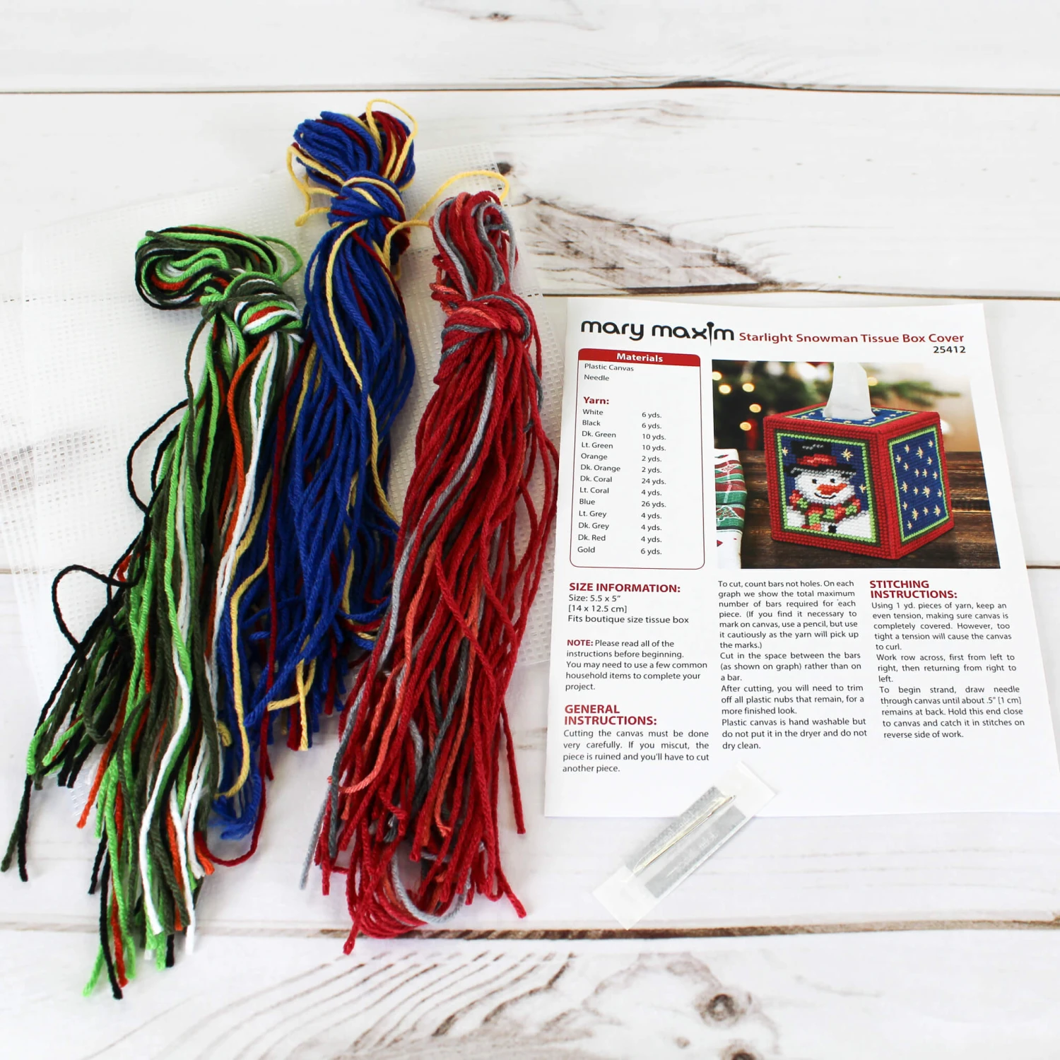 Starlight Snowman Tissue Box Cover Plastic Canvas Kit