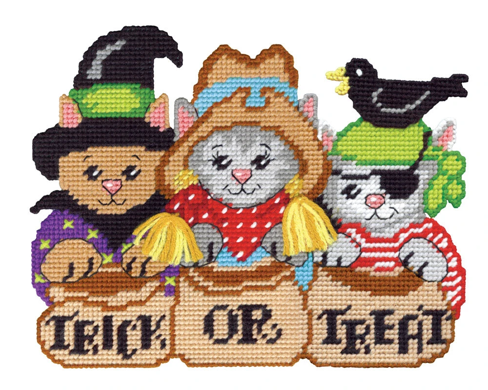 Trick Or Treat Cats Plastic Canvas Kit
