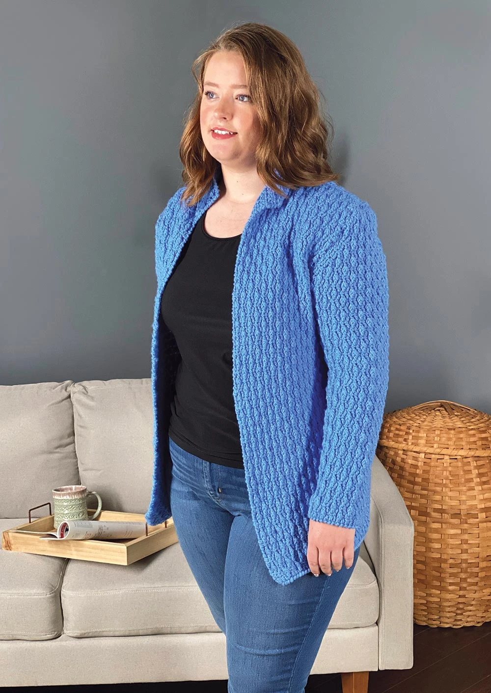 Designed by Faith Owiti. This warm sweater will keep the chill away. Kit includes Mary Maxim Starlette yarn and pattern. Requires crochet hook H-8.